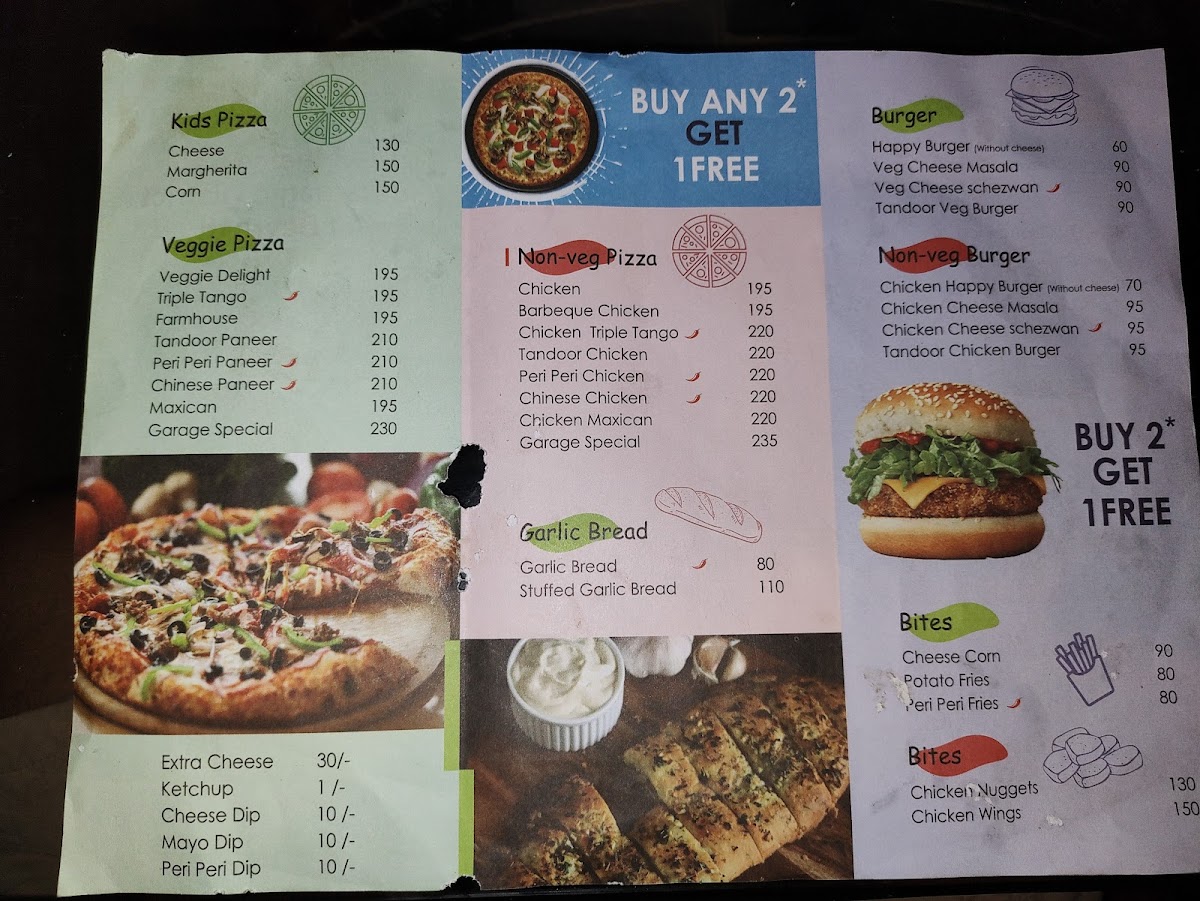 The menu at Zoom's offers a tantalizing array of dishes. For pizza lovers, options like Veggie Delight, Farmhouse, and the Garage Special are must-tries. If burgers are more to your taste, indulge in the Tandoor Veg Burger or the exciting Happy Burger. Complement your meal with refreshing mocktails, such as Mint Mojito and Blue Lagoon.